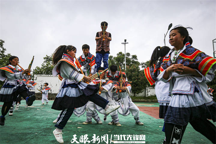 学生练习当地的特色舞蹈——滚山珠芦笙舞。