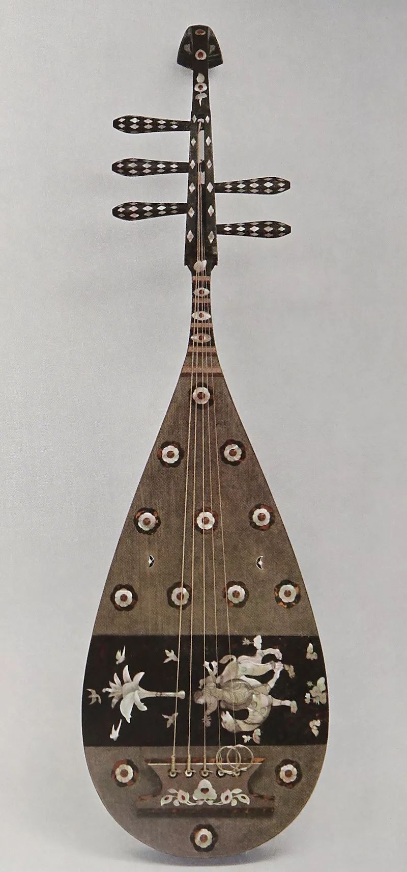 民国学者傅芸子先生,在《正仓院考古记》中写道,“按五弦胡乐,不知造者何人,起源于印度,经中央亚细亚,由龟兹国人之媒介,传入中国。隋唐九部乐中,均用此器。”可见五弦做为一种外来乐器,在唐代的流行程度,非同一般。不过,这种在形制和弹奏方法上,与四弦琵琶高度相似的乐器,到了宋代就已基本失传,四弦琵琶逐渐成为主流,五弦的概念也就随之消失了。